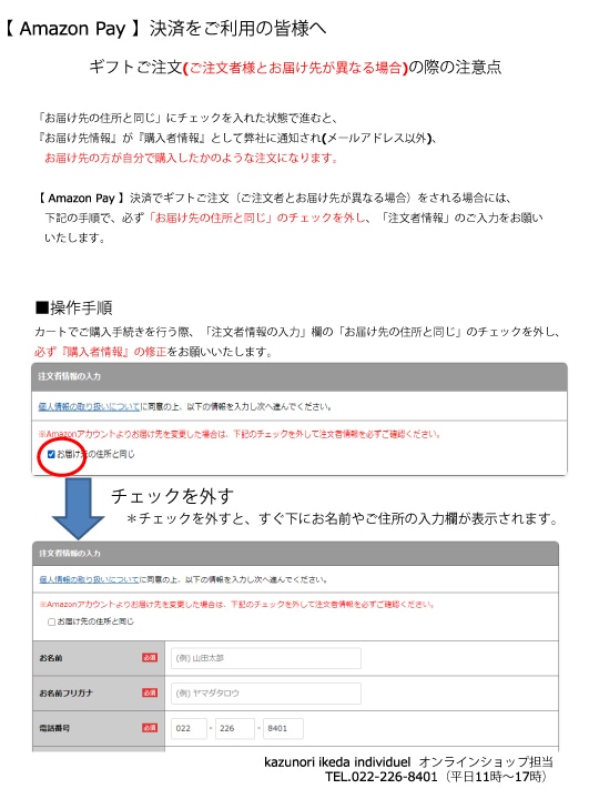amazon pay 決済でギフトのご注文をされる場合、 必ず下記をご確認くださいませ。